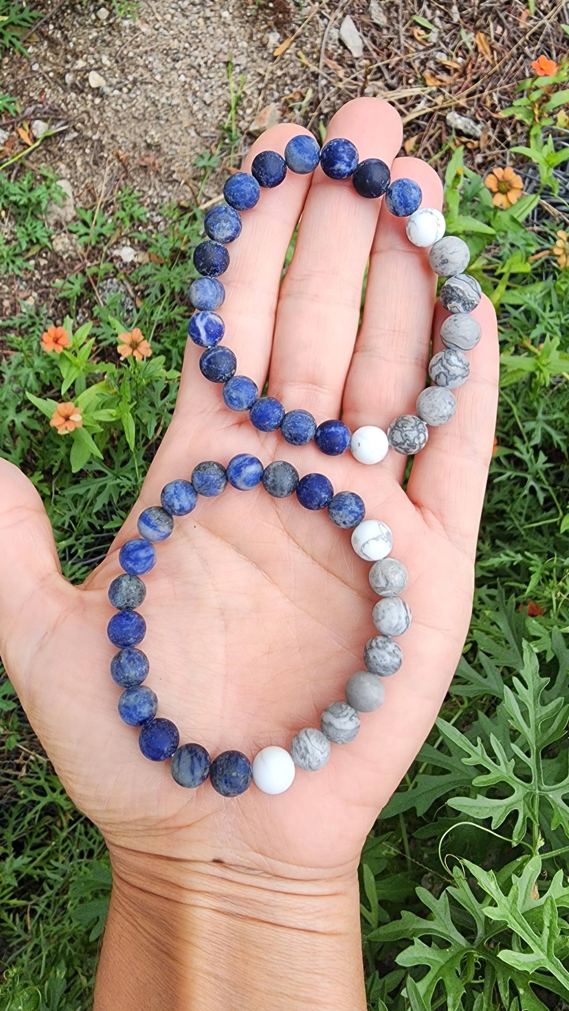 Sé el primero en valorar “Pulsera elástica 8mm Sodalita Mate y jaspe Picasso”